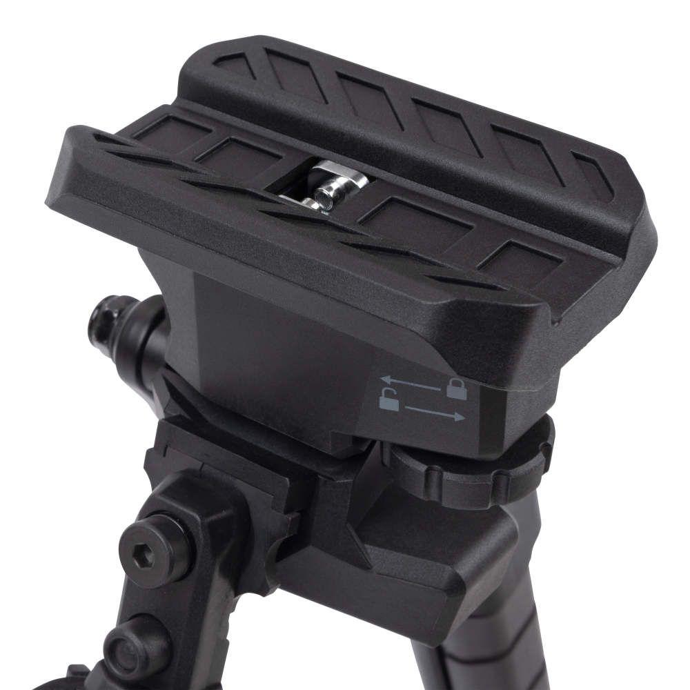 - 180 DEGREE ARC & QUICK ADJUSTMENT SYSTEM: Quick leg deployment extending across 4 length settings in 1" increments for quick shooting transitions and setupfive leg positions forward and rearward accommodate low prone to angled shooting stances.