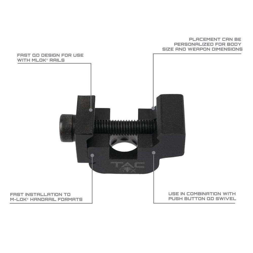 The Tac-Six Citadel QD Picatinny Rail Mount provides you with a mount specifically designed to work with the push button Quick Disconnect swivel system allowing users to remove the sling quickly and easily from their weapon.