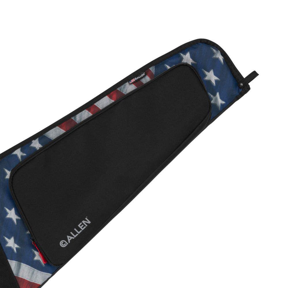 Transport your rifle with tactical confidence using the Victory Series 46-Inch Tactical Rifle Case by Allen Company. Made in the USA this soft gun case blends performance protection and patriotic styling with a rugged Endura exterior and padded interior. A slant-style design ensures streamlined carry while a large front accessory pouch organizes range gear mags or tools. Lockable zippers provide added security and a hook-and-loop patch field lets you personalize your loadout. Ideal for law enforcement predator hunters and recreational shooters headed to the range or field.