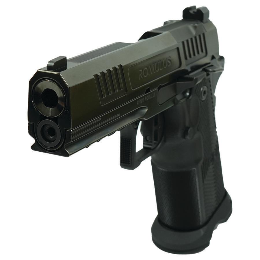 AF1911 Romulus Hammer Fired Slide And Frame Are SUS416 Black Polished DLC Finish. Ultra Match 416R Button Rifled Barrel 1:10 Rh 6 Groove. Injected Polymer Grip Module Extended Beaver Tail 19 Round Double Stack Magazine Glowing Night Sights Extended Slide Release Flared Magwell Accessory Rail Picatinny Rmsc Optics Cut Ambi-safety. 100% Made In America