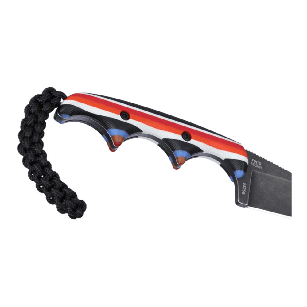 Crafted in collaboration with renowned custom knifemaker Alan Folts the Minimalist Wharncliffe redefines what a compact fixed blade can do. Built for those who demand performance without bulk this knife blends custom design sophistication with everyday practicality. Its tough D2 steel Wharncliffe blade delivers exceptional edge retention and wear resistance while three-finger choils ensure comfort and precise control in every cut. The multi-colored G10 handle provides a secure grip complemented by a fob for added purchase. Take it anywhere with the versatile sheath designed with multiple mounting options so your Minimalist Wharncliffe can ride where you need it—belt pack or kit.