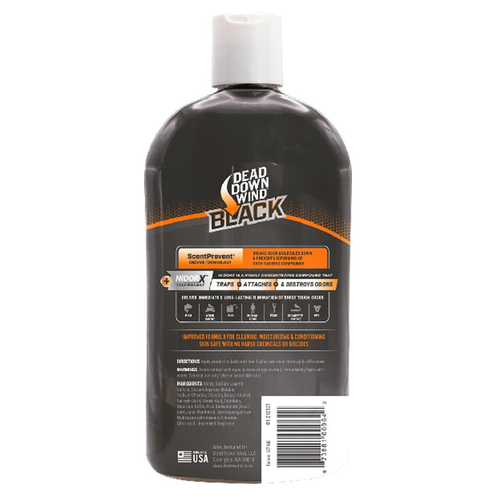 Dead Down Wind BLACK Premium with NidorX technology features an innovative 3-step formula that effectively traps attaches to and destroys odors. NidorX is a highly concentrated compound designed to entrap and block malodor molecules from being detected. Combined with Dead Down Wind's ScentPrevent enzyme formula Dead Down Wind BLACK Premium 3-in-1 Body Wash Shampoo and Conditioner is scientifically proven to deliver superior immediate and long-lasting odor elimination against even the most stubborn odors.