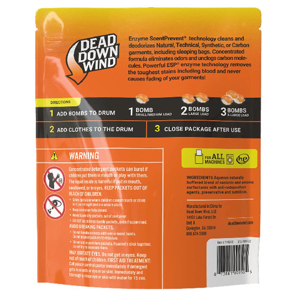 Dead Down Wind Unscented Laundry Detergent Bombs are made using advanced enzyme technology to eliminate a broad spectrum of odors that can attach to your clothing and hunting gear. It attracts and attacks bacteria at the molecular level eliminating it. Dead Down Wind Laundry Detergent contains no biocides so you can use confidently knowing that your skin and gear are safe. Use Dead Down Wind Laundry Detergent to clean deodorize & extend the life of the garments and keep yourself field ready.