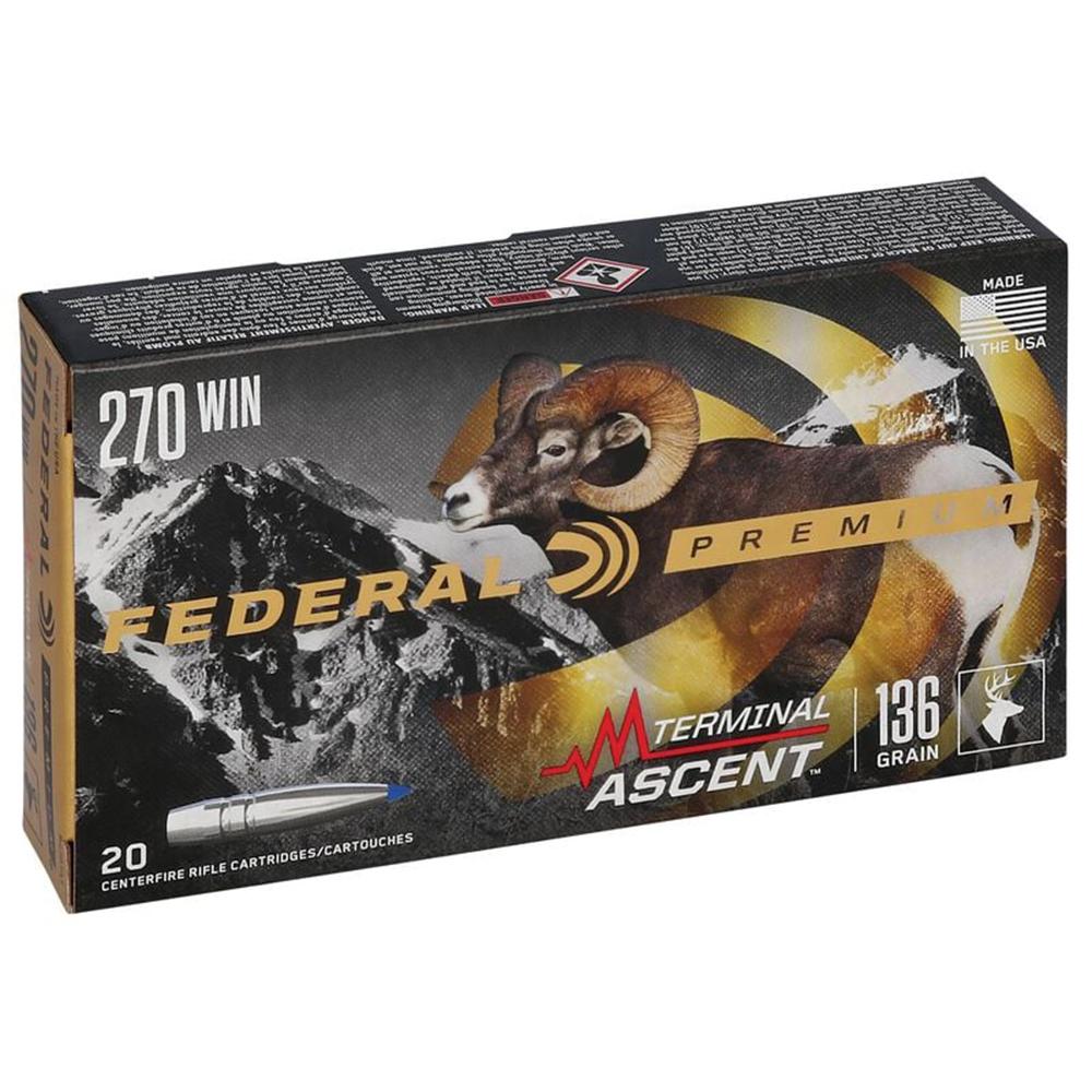Any hunt. Any range. Go beyond what you ever thought possible with Federal Premium Terminal Ascent. Bonded construction penetrates deep on close targets while the patented Slipstream polymer tip initiates expansion at velocities 200 fps lower than comparable designs. The bullet's long sleek profile offers an extremely high ballistic coefficient and its AccuChannel™ groove technology improves accuracy and minimizes drag. Available in a full selection of long-range hunting cartridges.
