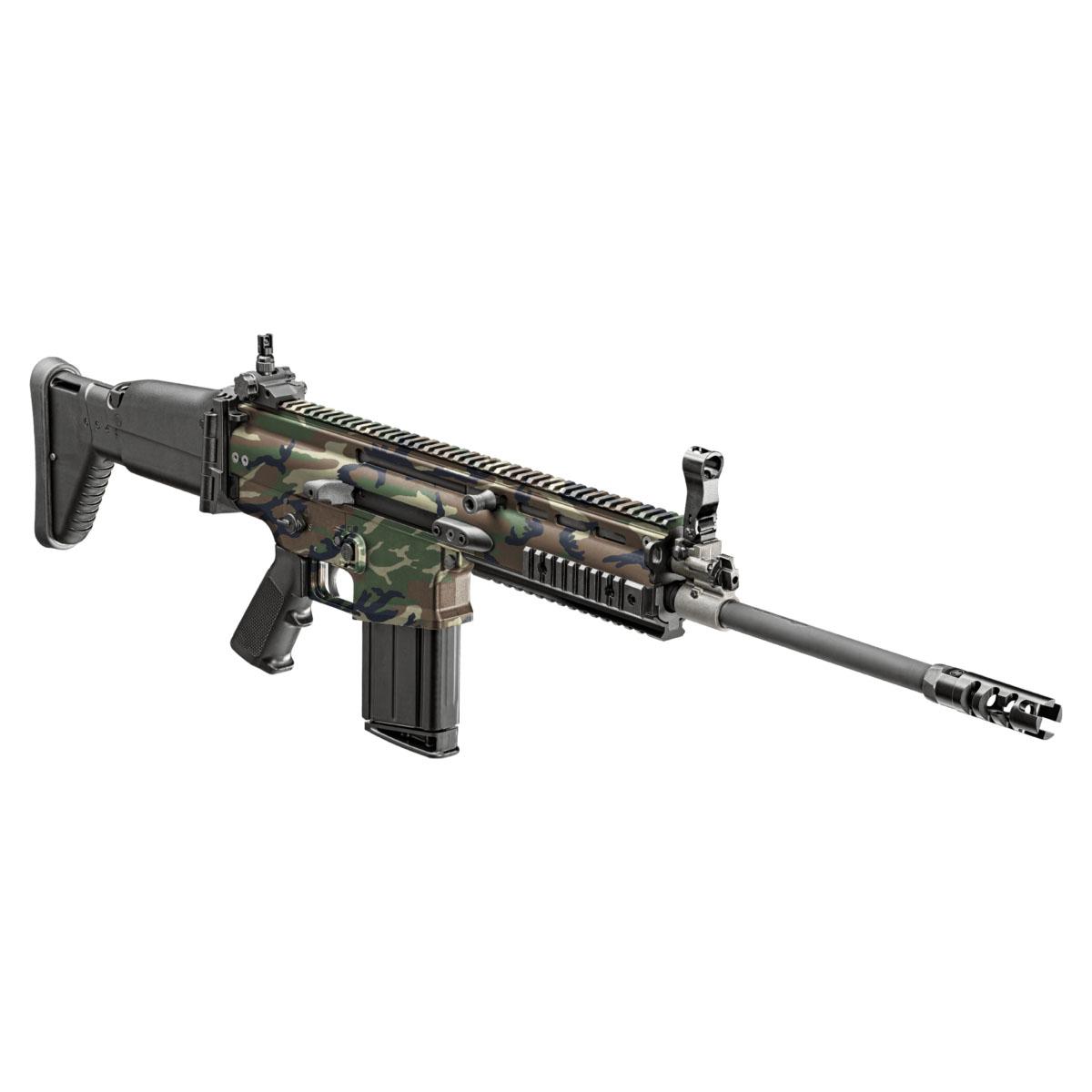 The legendary FN SCAR 17S is upgraded with Non-Reciprocating Charging Handles and available in woodland pattern as a limited edition.