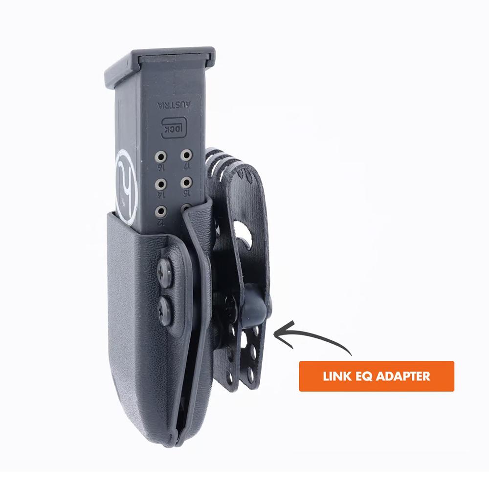 Duty Pistol Mag Carriers with LINK EQ are simple minimalist mag carriers that can be used with a variety of mags (available for Glock 9mm/.40 S1 and 2011 mags) and can be worn OWB with our lightweight LINK EQ system.