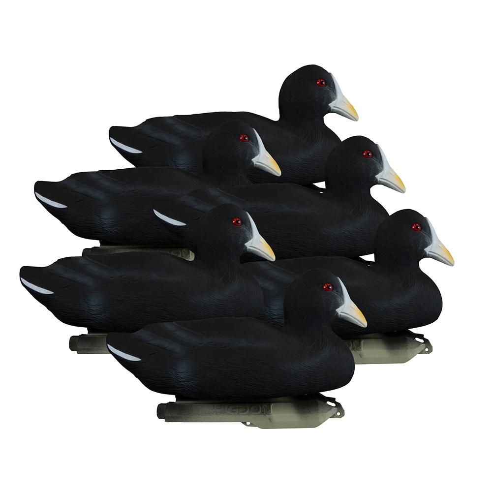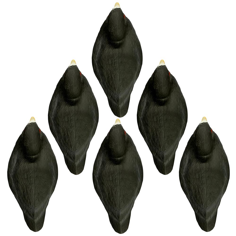 Birds of a feather flock together. Coots migrate at night and congregate in large rafts alongside other species of waterfowl. Adding coot decoys on the fringe of your spread adds an element of realism and visual mass that can be seen at great distances from the air. Confidence is key for wary waterfowl and by adding some Coot decoys is a great way to entice even the most guarded of waterfowl to commit to your hunting set-up. Standard size decoys are slightly undersized from an average live duck and are perfect for hunters looking for lightweight packable affordable decoys. Self-righting weighted keel for quick and easy set-up in any water depth. Higdon's innovative keel clip allows simple short stringing in shallow water. Higdon's highly detailed proprietary UV painting process and deep realistic carving techniques highlight each individual feather and minimize unnatural glare even when decoys are wet. Our paint won't peel or fade so your decoys will look great season after season. Package includes: 6 Upright Drakes. As a Ducks Unlimited Official Licensed Product a percentage of your purchase will go toward wetland conservation.