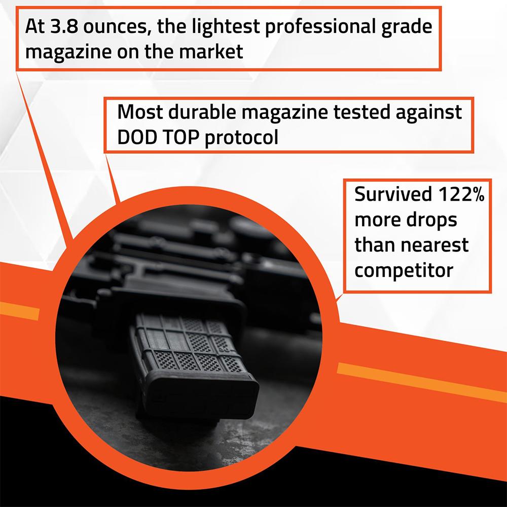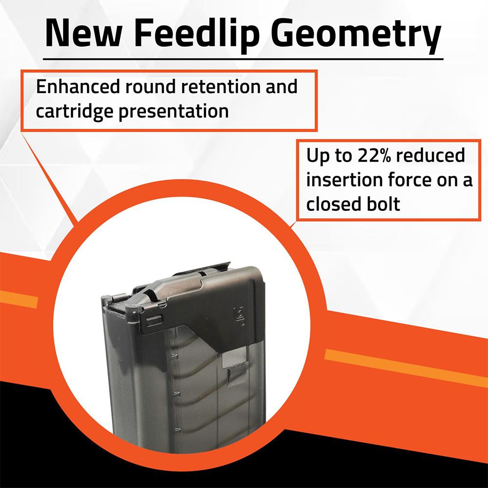 Featuring a precision engineered hardened steel feedlip geometry and advanced floorplate lock design the L5AWM GEN 2 delivers optimized cartridge stacking enhanced round presentation exceptional round retention and bulletproof feeding performance and reliability.