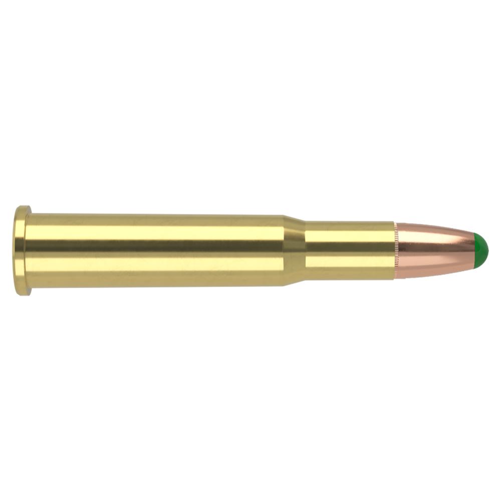 Loaded with a 150gr Round Nose Ballistic Tip Hunting Bullet and Nosler Premium Brass