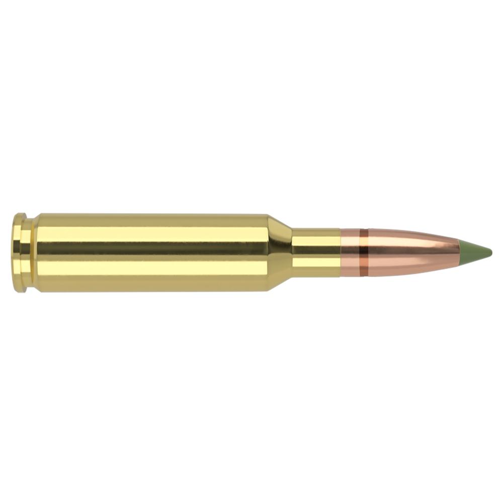 Loaded with a 120gr Spitzer E-Tip Bullet and Nosler Premium Brass