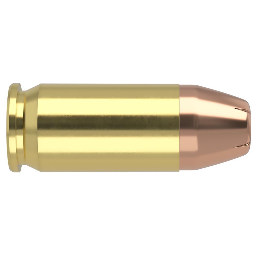 Loaded with a Assured Stopping Power 185 Grain Jacketed Hollow Point Bullet and Nosler Cartridge Brass.