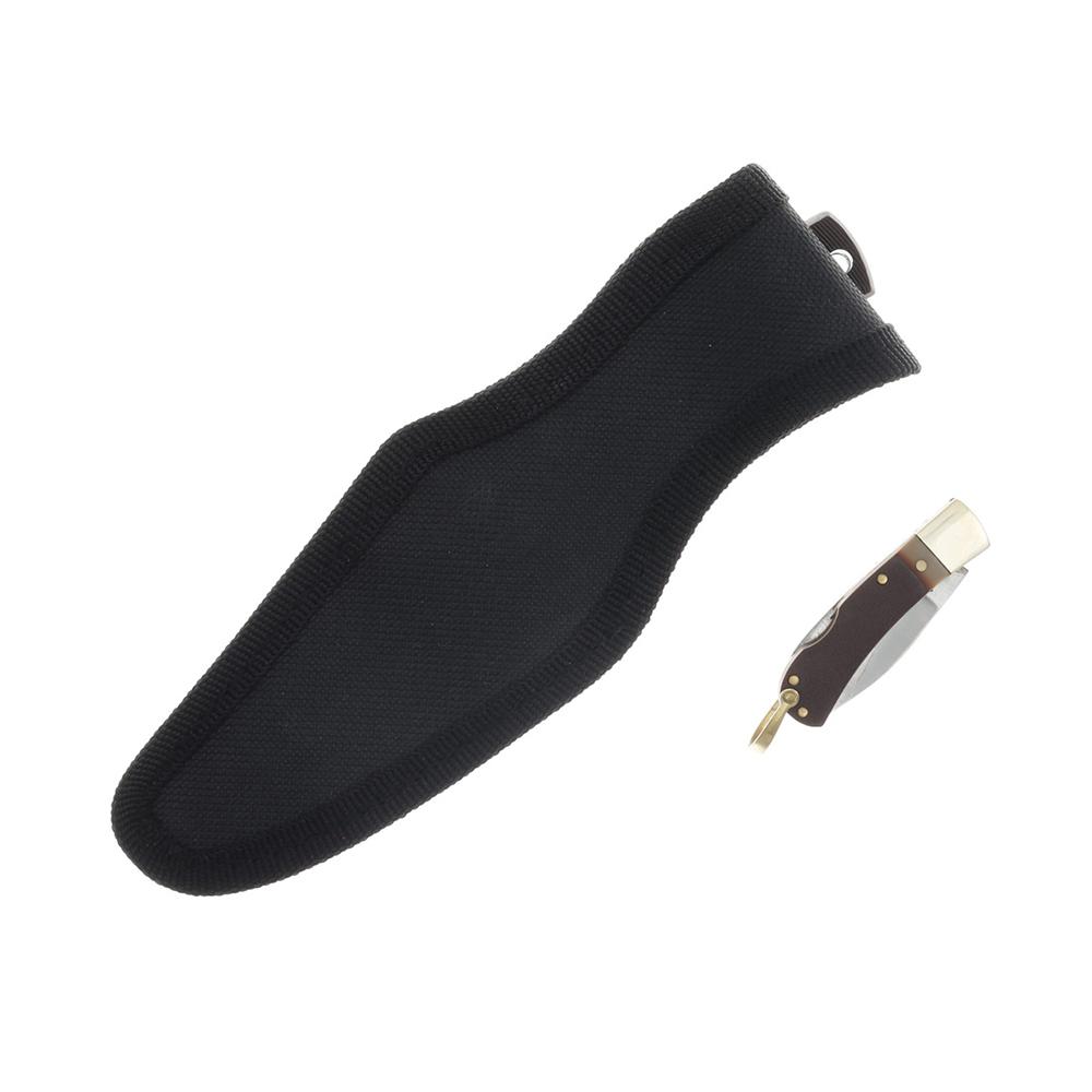 The companion Lockback folding knife features a 1.6-inch stainless steel clip point blade with a secure lockback mechanism making it a reliable choice for light cutting tasks camp chores or as a handy everyday carry option. Its compact 3.9-inch overall length when open allows for easy pocket carry while maintaining the same brown sawcut Delrin handle styling complementing the fixed blade knife and ensuring a cohesive look across the set. Both blades have plain edges emphasizing practical no-nonsense cutting performance over decorative features.