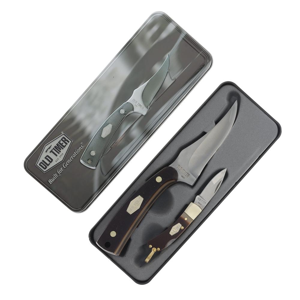 The Old Timer 2-Piece Sharpfinger and Lockback Knife Set is a rugged dependable combo designed for hunters outdoorsmen and collectors who value traditional craftsmanship paired with modern durability.