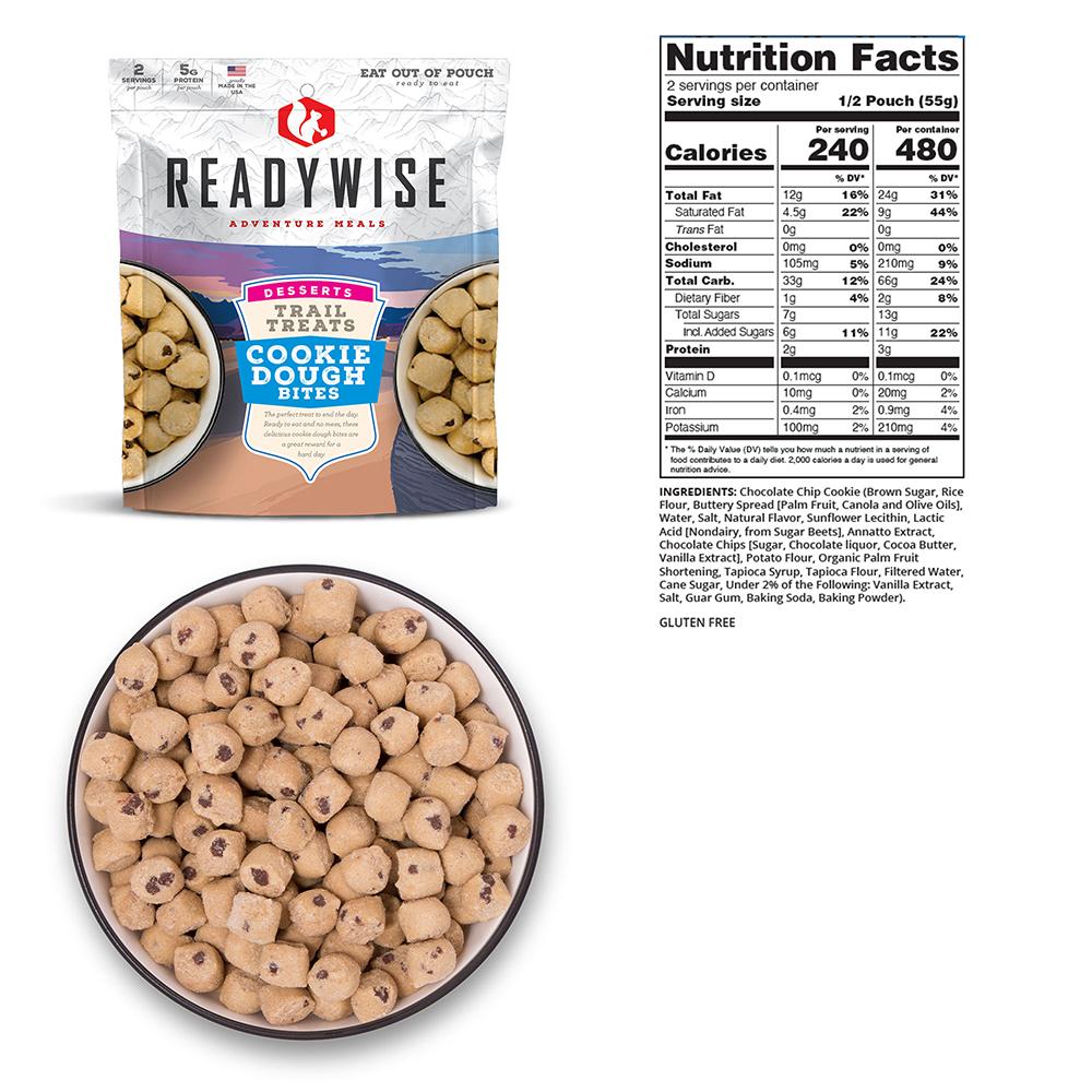 Each pouch of our Trail Treats Cookie Dough Snacks contains 2 servings and is resealable. These pouches are lightweight making them easily portable on any outdoor adventure. Just eat directly from the pouch!