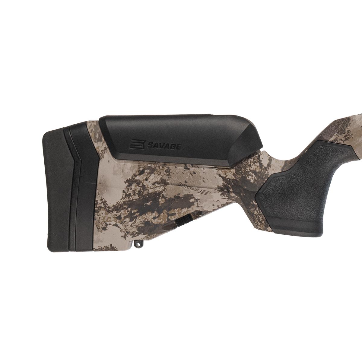 Built as a versatile core hunting rifle 110 Ultralite Pro pairs modern ergonomics with rugged performance: a Savage exclusive camo stock with AccuFit V2 showcasing toolless LOP and comb adjustments plus interchangeable grip modules and M-Lok® panels lets you tailor fit and accessory layout on the fly while a Blackout Cerakoted barreled action and diamond fluted bolt body with a threaded bolt handle provide corrosion resistance and silky operation. The user-adjustable AccuTrigger delivers predictable tunable breaks; 18–24″ carbon fiber barrels keep weight forward for steady tracking yet remain size-flexible by caliber. A threaded muzzle one-piece 20 MOA rail for optics and AICS magazine make the rifle ready for any setup and the option of many calibers in left-hand configuration ensures equal performance for southpaw shooters.