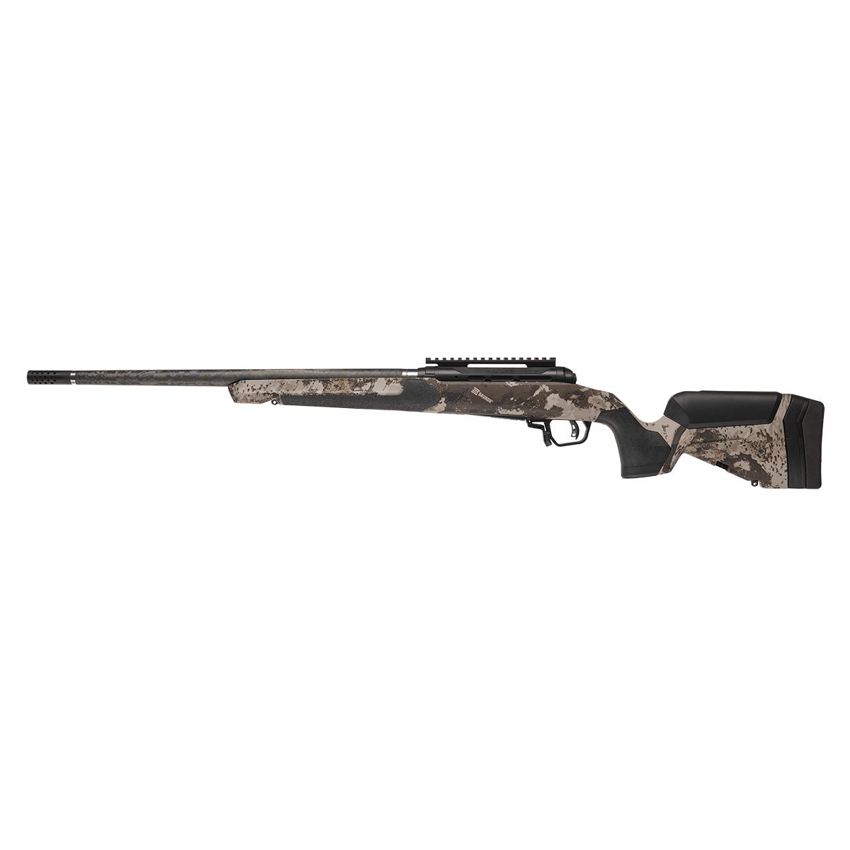 Built as a versatile core hunting rifle 110 Ultralite Pro pairs modern ergonomics with rugged performance: a Savage exclusive camo stock with AccuFit V2 showcasing toolless LOP and comb adjustments plus interchangeable grip modules and M-Lok® panels lets you tailor fit and accessory layout on the fly while a Blackout Cerakoted barreled action and diamond fluted bolt body with a threaded bolt handle provide corrosion resistance and silky operation. The user-adjustable AccuTrigger delivers predictable tunable breaks; 18–24″ carbon fiber barrels keep weight forward for steady tracking yet remain size-flexible by caliber. A threaded muzzle one-piece 20 MOA rail for optics and AICS magazine make the rifle ready for any setup and the option of many calibers in left-hand configuration ensures equal performance for southpaw shooters.