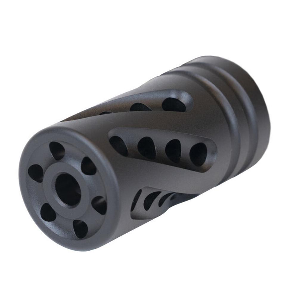 Constructed from durable aluminum this compensator weighs only 0.14 ounces making it a lightweight addition to your firearm. With dimensions of 1.55 inches in height 5.00 inches in width and 6.40 inches in length it is the perfect choice for those seeking performance without adding unnecessary bulk.