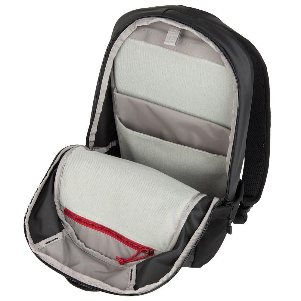 • Armored ghost. Concealed entry inside main compartment for soft or rigid body armor. Always protected never detected.