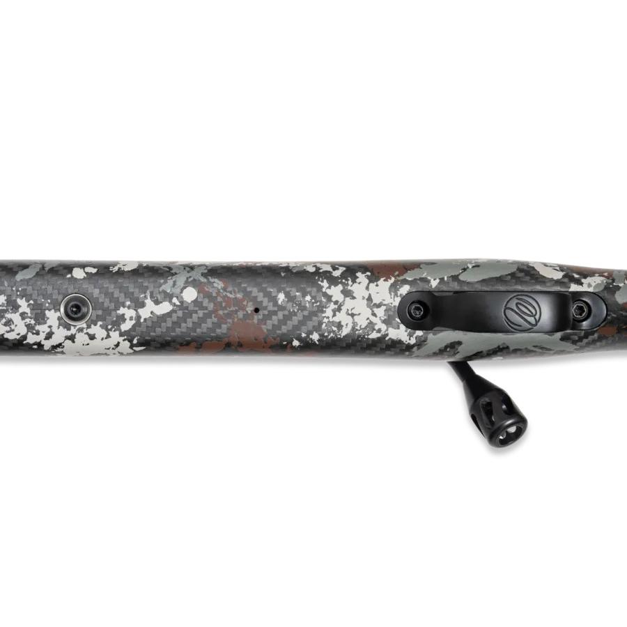The Backcountry Capra redefines the lightweight mountain rifle and raises Weatherby’s standard for backcountry performance. Starting at just 4 pounds the Capra uses the Mark V 6-lug short action machined from titanium making it one of the lightest production rifles ever offered. Its thin-contour barrel features double-spiral fluting that forms a double helix. This cuts weight while adding rigidity to deliver sub-MOA accuracy. A modified Peak 44 Blacktooth stock shaves ounces on the trail while preserving comfortable ergonomics and effective recoil control.